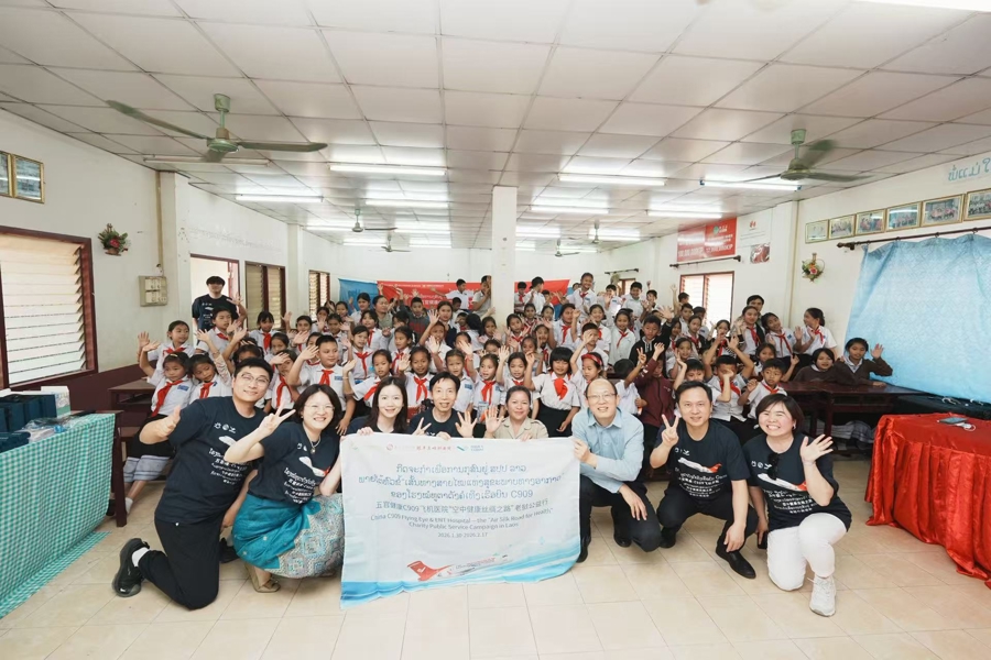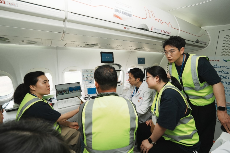 澜沧江-湄公河一脉相连。近日,复旦大学附属眼耳鼻喉科医院联合中国商飞打造的五官健康C909飞机医院首次飞赴老挝万象,开展跨国五官健康公益行动,以义诊筛查、联合门诊、公益手术、医学教学、健康科普等形式,将优质医疗资源送到当地,为2026中老建交65周年暨中老友好年添上务实一笔。