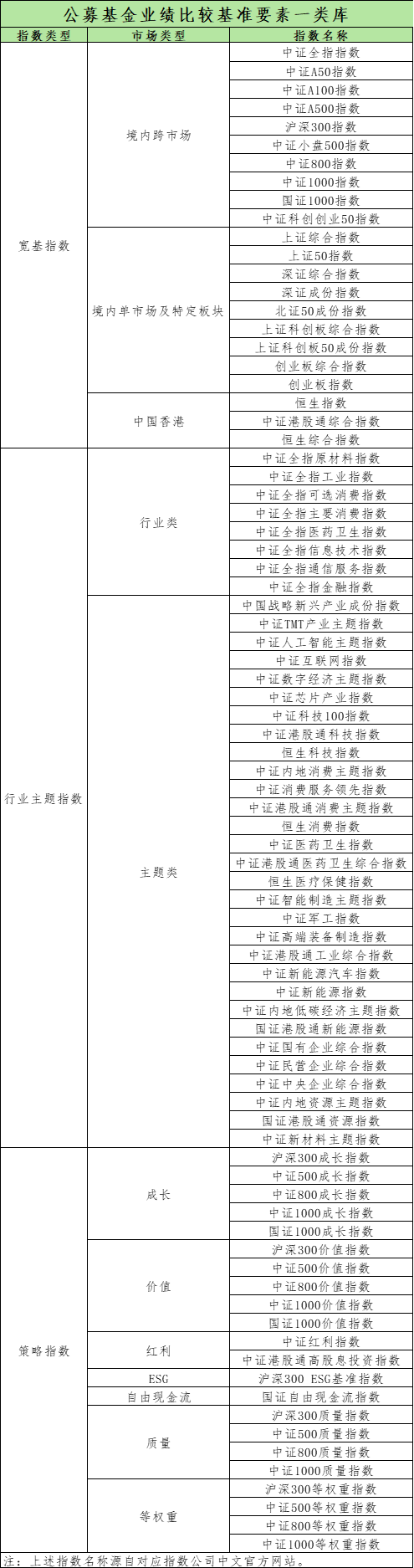 公告显示,基准库包括《公募基金业绩比较基准要素库运作说明》和股票指数一类库、二类库。主要内容包括以下方面: